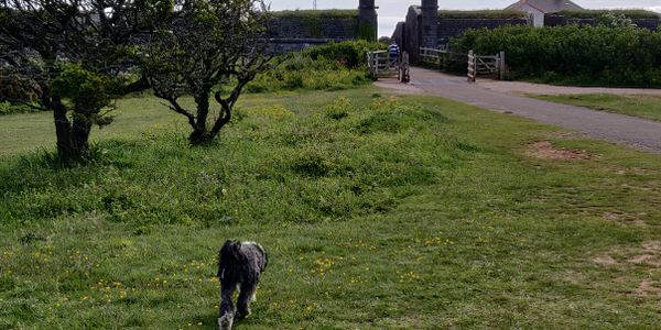 If you take your dog up there it is a great off-leash area but I would suggest leashing up as you walk through the bushes towards the lighthouse as there are no barriers to the edge of the steep cliffs at this point. Looking from here to the right there is a further fort a little bit further along the cliff path which is worth a visit. From here you can carry on along the South West Coastal path - see St Mary's Beach walk.